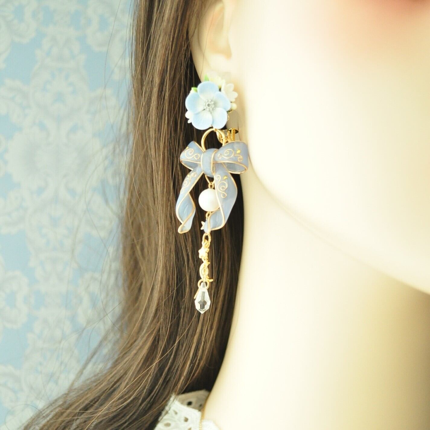 繊細なラインで描かれた透明感のあるリボンは、lala m’yourさんによるワイヤーレジンの技巧が光る一点。